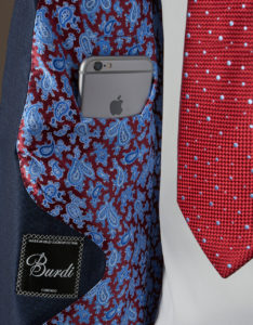 All Burdi sport and suit jackets come standard with five internal pockets, including specific pockets for your smartphone and a writing instrument. Each one can be custom fitted to your particular lifestyle and its needs. Maybe you need one a little wider or deeper for a cigar case, a particularly large wallet or some other everyday necessity – we can make that happen. All the pockets “float” inside the jacket. That way, if for some reason your jacket gets turned upside down, the contents of the pockets stay put. Too, by having a “floating” pocket in your jacket, you’ll never experience the dreaded “pocket bulge” – your jacket will remain smooth and sleek on the outside.